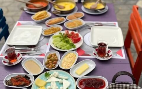 2 Kişilik Serpme Kahvaltı (Semaver Çayı İle Birlikte. 3 çeşit zeytin, 5 çeşit peynir, kakaolu krema,...